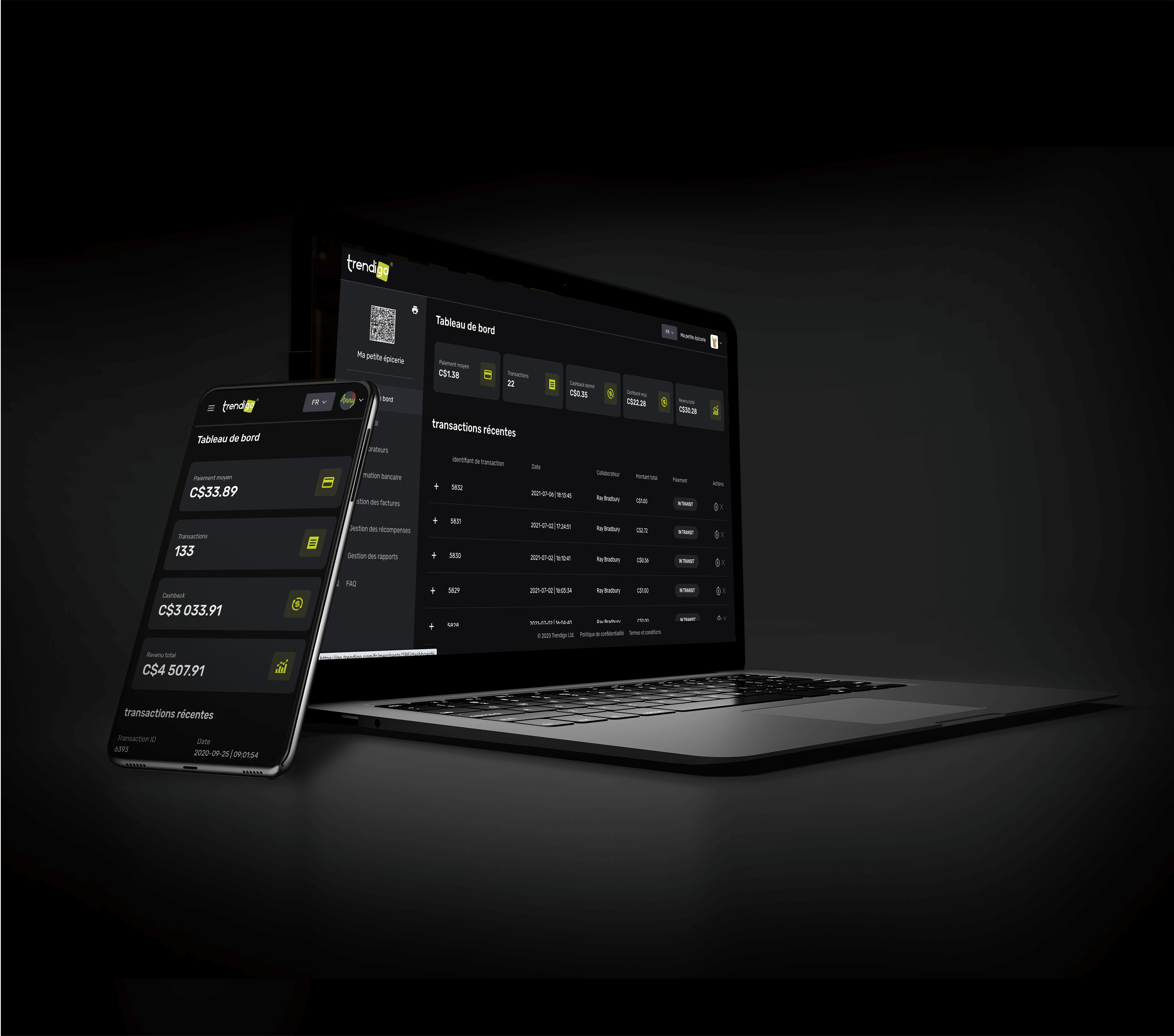 Un back-office pour suivre vos transactions, obtenir des données précieuses (produits, heures, emplacement, prix...) et prendre des décisions.